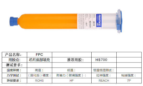 針對(duì)FPC的底部填充,漢思化學(xué)自主開(kāi)發(fā)了FPC專用系列底部填充膠,活動(dòng)速度快,工作壽命長(zhǎng)、翻修性能佳,能有效降低由于芯片與基板的熱澎脹系數(shù)不匹配或外力造成的沖擊,提高產(chǎn)品的可靠性,更好地解決FPC制造中芯片底部填充、FPC補(bǔ)強(qiáng)問(wèn)題等。漢思化學(xué)FPC芯片底部填充膠質(zhì)量穩(wěn)定,清潔高效,滿足華為新雙85、500H測(cè)試需求,產(chǎn)品通過(guò)SGS認(rèn)證,獲得ROHS/HF/REACH/7P檢測(cè)報(bào)告。 整體環(huán)保標(biāo)準(zhǔn)比行業(yè)高出50%,從2015年開(kāi)始,漢思也與華為達(dá)成了長(zhǎng)達(dá)幾年的穩(wěn)定合作關(guān)系。