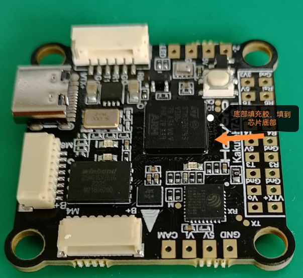 無(wú)人機(jī)控制板PCB板上有兩個(gè)BGA芯片模塊需要底部填充膠點(diǎn)膠加固保護(hù),抗震動(dòng),適應(yīng)冷熱環(huán)境沖擊,提高產(chǎn)品的可靠性。
