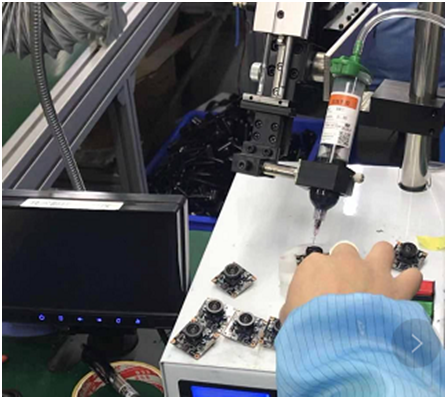 車載攝像頭主要由鏡頭、CMOS傳感器、模組組裝及其他部件組成。鏡頭與底座粘接工藝要求嚴(yán)苛,攝像頭模組與PCB需加固貼合,在四邊拐角上點(diǎn)膠水,形成保護(hù)堰,增強(qiáng)CMOS模組和PCB的貼合強(qiáng)度,并分散和降低因震動(dòng)所引起的突點(diǎn)張力和應(yīng)力。因而,鏡頭底座和FPCB粘接固定需要強(qiáng)有力的低溫黑膠賦能,在這一領(lǐng)域,漢思新材料無疑是極佳選擇。